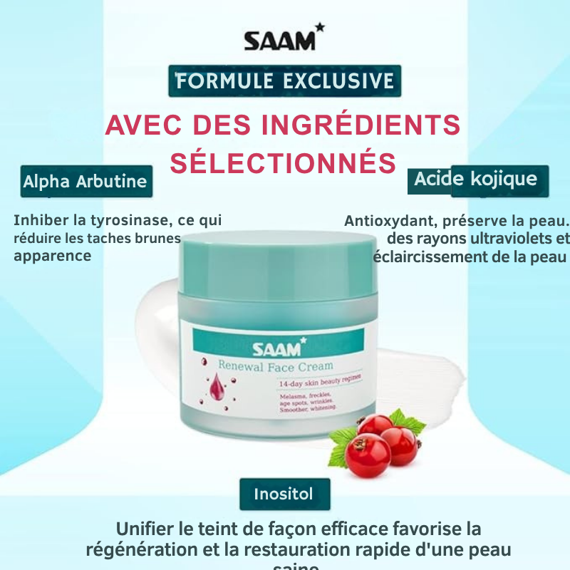 La crème anti-tâches SAAM est bien plus qu'un simple soin hydratant : c'est un véritable traitement rénovateur qui agit visiblement en 14 jours seulement !