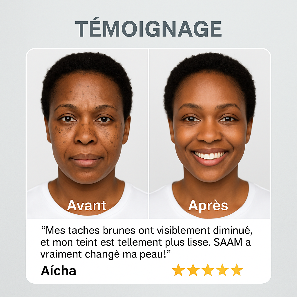 La Crème Visage Régénérante SAAM est une véritable révolution dans le soin de la peau : elle allie correction des tâches, régénération cellulaire et hydratation intense, sans compromis.